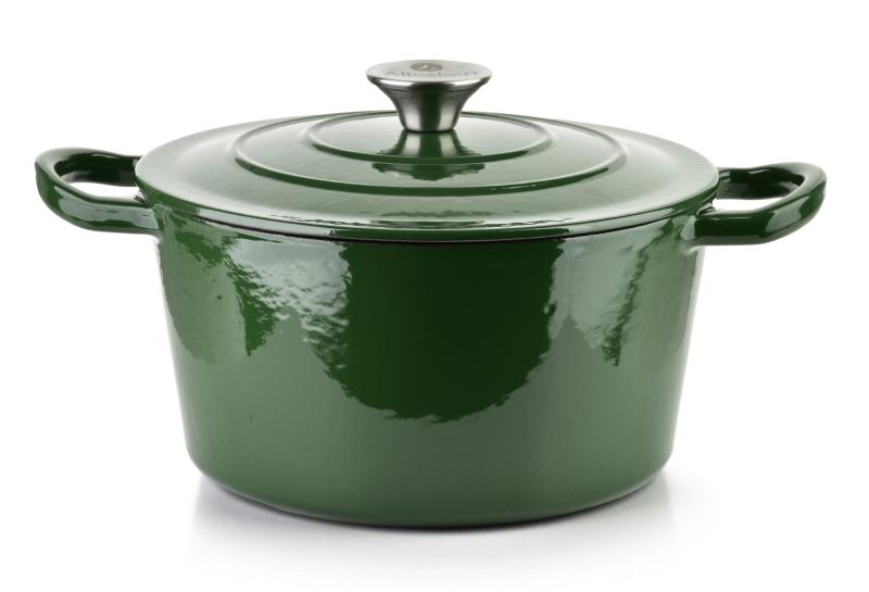 Żeliwo emaliowane najwyższej jakości – odporne na zarysowania i wysoką temperaturę.