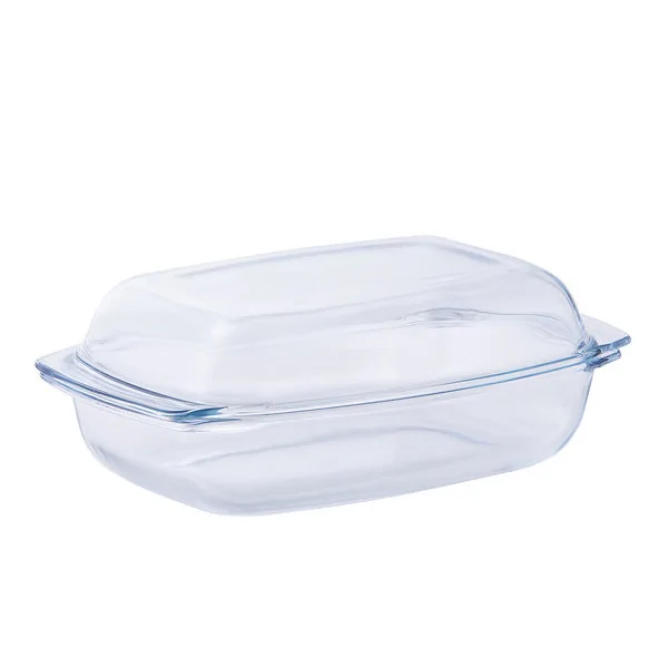 Naczynie żaroodporne z pokrywą to produkt, który znajdzie zastosowanie w kuchni podczas pieczenia. Doskonałe do przygotowania dużych pieczeni, kaczki lub indyka, ryb, zapiekanek warzywnych lub makaronowych oraz innych dań mięsnych. Posiada wygodne, wyprofilowane uchwyty pozwalające w bezpieczny sposób wyjąć i przenieść naczynie. Oba elementy brytfanki można wykorzystać jako osobne naczynia żaroodporne. Produkt można używać w mikrofalówce, w piekarniku oraz kuchence gazowej. Odporne na wysokie i niskie temperatury w zakresie od -40 do 300 °C. Produkt wytrzyma także szok termiczny w przedziale 20-160 °C i powolne rozgrzewanie do 270 °C. Naczynie wykonane ze szkła boro-krzemowego, wolnego od kadmu czy ołowiu. Łatwe w oczyszczaniu i przenoszeniu, posiada gwarancje dopuszczalną do kontaktu z żywnością. Przystosowane do mycia w zmywarce, nie rysuje się i nie matowieje oraz nie pochłania zapachów, dzięki czemu jest bezpieczna dla zdrowia.
