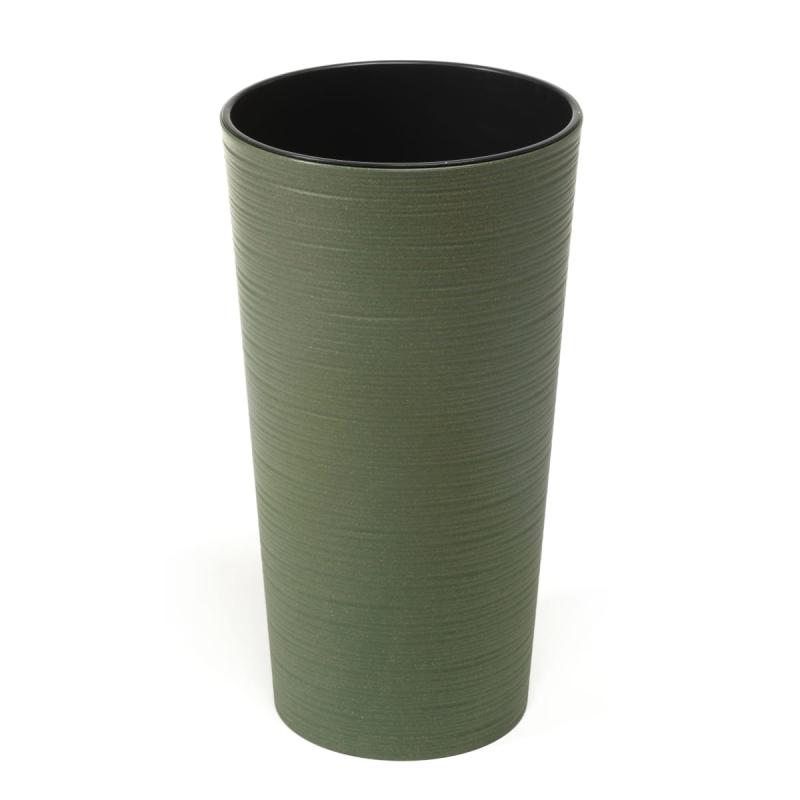 Wysoka doniczka Lilia o okrągłym kształcie oraz o strukturalnym wzorze imitującym ślad użycia dłuta, marki Lamela to doskonały element każdego wnętrza i ogrodu. Prosta doniczka z wyciąganym wkładem wewnętrznym z uchwytami umożliwia oszczędzenie dużej ilości podłoża w przypadku wysokich donic. Posiada również dedykowany system nawadniający. Wykonana z wysokiej jakości tworzywa ECO 40% drewna, odporna na zarysowania, łatwa w oczyszczaniu. Idealnie pasuje do ogrodowych mebli, na tarasie lub balkonie.