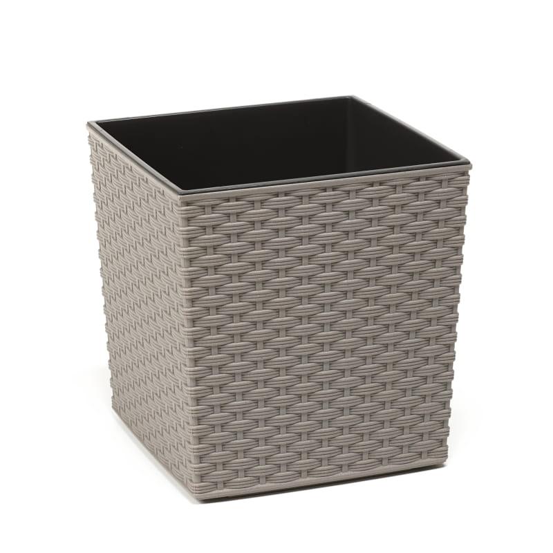 Niska doniczka Juka o kwadratowym kształcie oraz o strukturalnym wzorze plecionki, która przypomina splot rattanowy, często spotykany w meblach ogrodowych, marki Lamela to doskonały element każdego wnętrza i ogrodu. Prosta doniczka z wyciąganym wkładem wewnętrznym z uchwytami umożliwia oszczędzenie dużej ilości podłoża w przypadku wysokich donic. Posiada również dedykowany system nawadniający. Wykonana z wysokiej jakości tworzywa ECO 40% drewna, odporna na zarysowania, łatwa w oczyszczaniu. Idealnie pasuje do ogrodowych mebli, na tarasie lub balkonie.