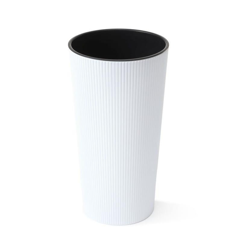 Wysoka doniczka Lilia Jumper o okrągłym kształcie oraz o strukturalnym, modny wzorze pionowego prążka, marki Lamela to doskonały element każdego wnętrza, tarasu lub balkonu.