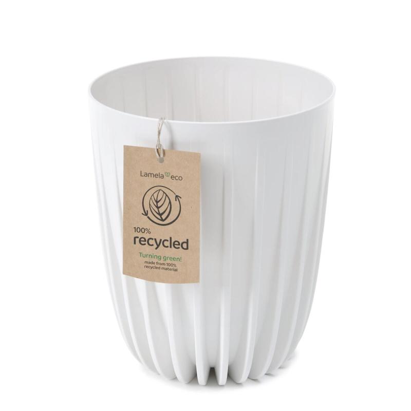 Elegancka doniczka Mira eco recykled marki Lamela to doskonały element każdego wnętrza, biura lub ogrodu. Wykonana w okrągłym, podłużnym kształcie, zwężana ku dołowi o strukturalnym, modnym wzorze pionowych wyżłobieniach. Wyróżnia się bardzo nowoczesnym wyglądem, który dopełnia roślinną kompozycję we wszystkich pomieszczeniach. Ponadczasowa, elegancka doniczka idealnie nada się do zasadzenia kwiatów i roślin zielonych. W komplecie znajduje się wkład do doniczki, pozwala on na zużycie mniejszej ilości ziemi. We wkładzie można wykonać dziury, które zapobiegną przelewaniu rośliny. Wykonana z tworzywa ECO w 100% z recyklingu, lekka i wytrzymała, odporna na zarysowania oraz warunki atmosferyczne, łatwa w oczyszczaniu i przenoszeniu. Doniczka Mira eco Recykled zachwyci swoim pięknym kolorem, pasującym do każdej stworzonej aranżacji.