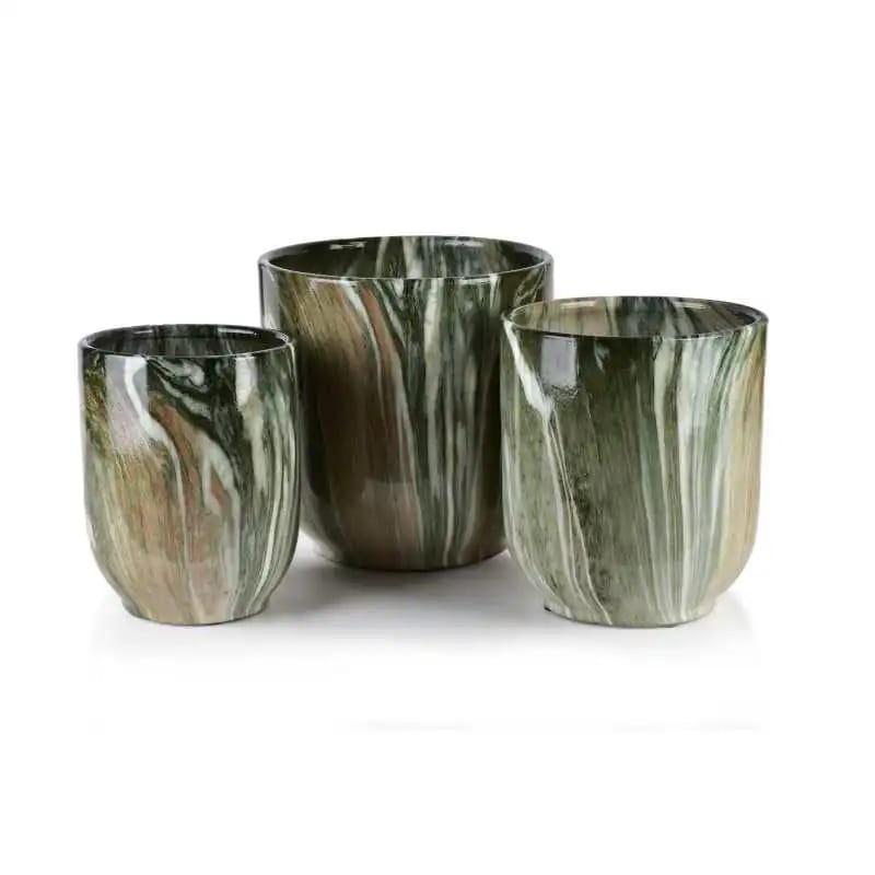 NEVA MARBLE ZIELONY – Komplet 3 Osłonek Ceramicznych by MONDEX since 1986 | Zielona Klasyka z Marmurowym Szykiem
