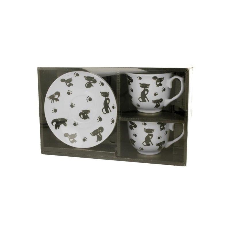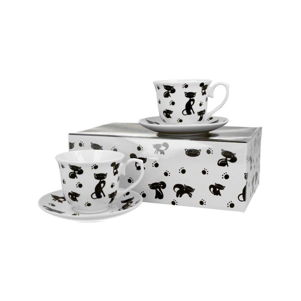Filiżanki 250 ml 2 szt. + spodki koty czarne 3861