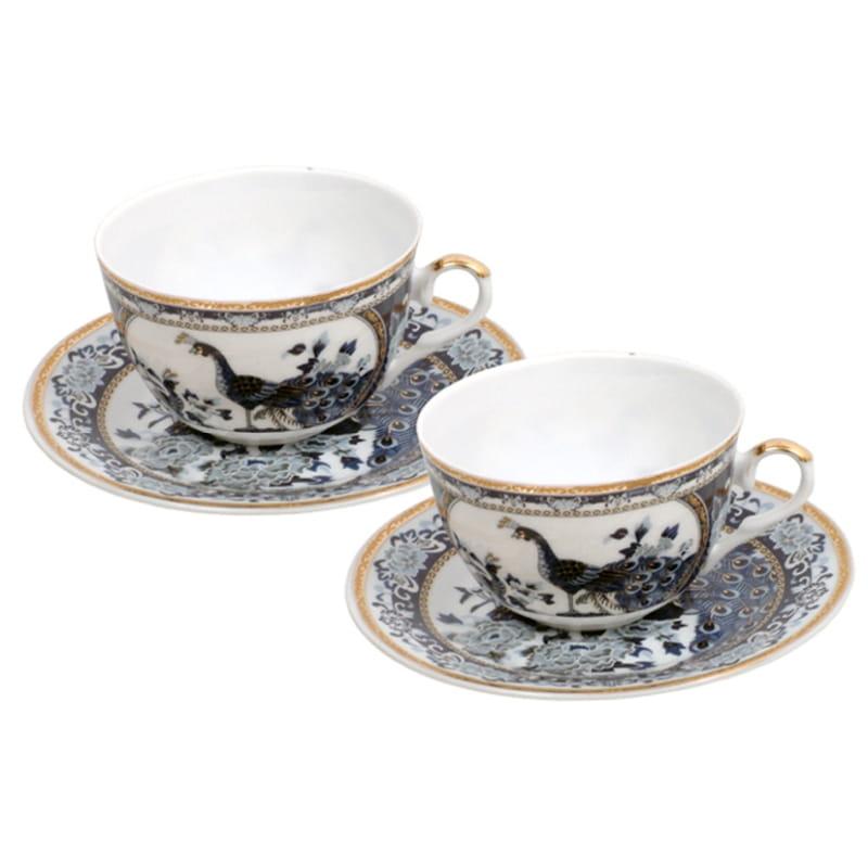 Elegancki komplet 2 filiżanek ze spodkami to piękny zestaw porcelanowy do podawania kawy lub herbaty, który nada wyjątkowego uroku do codziennych spotkań lub specjalnych okazji. Charakteryzuje się pięknym zdobieniem niebieskich pawi z unikatowymi wzorami biegnącymi wokół kubka i pokrywki. Wyróżnia się naturalnym, biało-granatowym kolorem z delikatnym połyskiem, który nada charakteru w codziennym użytkowaniu. Wykonany z wysokiej jakości porcelany z idealnie dopracowanym wykończeniem. Łatwy w utrzymaniu czystości, odporny na zarysowania, gorące temperatury, dopuszczony do kontaktu z żywnością. Produkt zapakowany w ozdobne pudełko z takim samym motywem. Jest to doskonały pomysł na niebanalny prezent dla każdego. Można używać w kuchence mikrofalowej oraz myć w zmywarce.