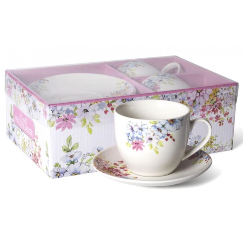 Filiżanki ze spodkami 2 szt do herbaty 250 ml