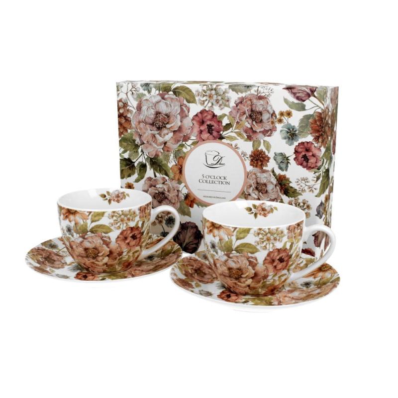 Porcelanowy zestaw filiżanek i spodków w eleganckim klasycznym kształcie. Wyprodukowany z porcelany New Bone, charakteryzującej się naturalną białą barwą z delikatnym połyskiem oraz wyjątkową wytrzymałością pozostając przy tym lekkim i delikatnym. Produkt zapakowany w pudełko będące osobnym dziełem sztuki – przepiękny kolorowy kartonik ozdobiony wzorem odpowiadającym aplikacji na samym naczyniu – całość stanowi doskonały pomysł na upominek dla bliskiej osoby.