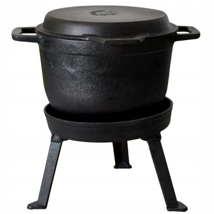 Kociołek żeliwny myśliwski 3 w 1 o pojemności 5 L idealnie sprawdzi się zwłaszcza na wolno pieczone potrawy takie jak pieczonki, zupy, gulasze czy duszone mięso. Jest świetną i zdrowszą alternatywą dla wieczorów przy grillu. Wyposażony w solidną pokrywę z funkcją patelni grillowej oraz trzy stabilne nóżki przykręcone do stojaka, na którym można postawić garnek. Posiada odkręcane nóżki, które ułatwiają stosowanie go także na różnego typu piecach i palnikach. Grube dno żeliwa szybko się nagrzewa, zapewniając równomierny rozkład temperatury. Przygotowane dania będą zawsze ciepłe i smaczne poprzez wolne stygnięcie kociołka. Wykonany został z najwyższej jakości materiałów, metodą ciśnieniowego odlewu płynnego żeliwa odpornego na wysokie temperatury oraz zarysowania. Naczynia żeliwne służą w kuchni od wielu lat. Podczas gotowania nie wydzielają żadnych szkodliwych związków chemicznych. Można ustawić go na nóżkach bezpośrednio na ognisku lub powiesić go na uchwycie nad źródłem ognia. Systematyczna impregnacja kociołka zapewni jego nieskazitelny wygląd przez lata. Zalecane jest mycie ręczne.