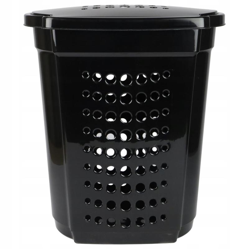 Kosz na pranie 60 L czarny wolnostojący z pokrywą do domu łazienki 8297