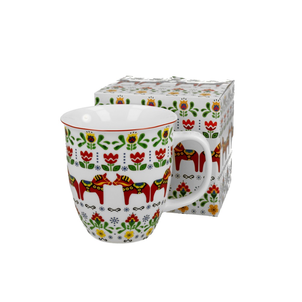 Kubek o pojemności 650 ml, ze wzorem Skandynawskim wchodzący w skład serii Etno to niezwykle piękna porcelana. Wykonany w naturalnym kolorze z delikatnym połyskiem, który nada charakteru i funkcjonalności w codziennym użytkowaniu. Charakteryzuje się nietuzinkowy motywem kolorowych, etnicznych wycinanek znajdujących się wokół kubka, które idealnie komponują się z białym tłem. Wykonany z wysokiej jakości porcelany New Bone China z idealnie dopracowanym wykończeniem. Łatwy w utrzymaniu czystości, odporny na zarysowania. Produkt zapakowany w ozdobne pudełko dekorowane tym samym motywem. Jest to doskonały pomysł na niebanalny prezent dla każdego. Można używać w kuchence mikrofalowej oraz myć w zmywarce.
