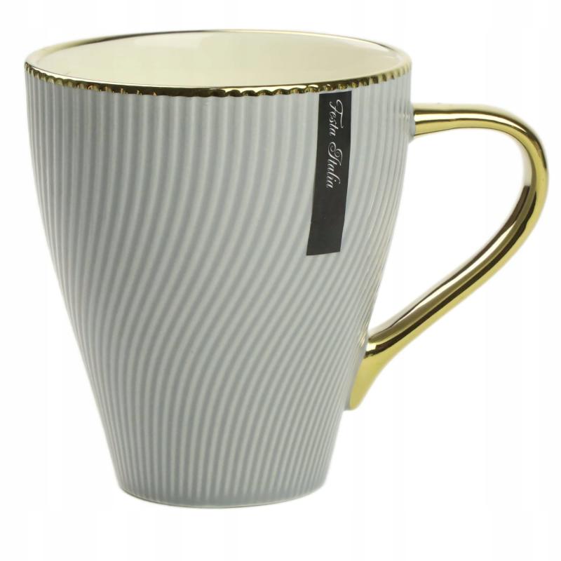 Podsumowanie: Kubek porcelanowy duży złoty kwiaty Festa Italia 400 ml to piękne, stylowe naczynie, które doda elegancji każdej chwili z ulubionym napojem. Jest to doskonały wybór na prezent lub do codziennego użytku dla osób ceniących wyjątkowy design i wysoką jakość.