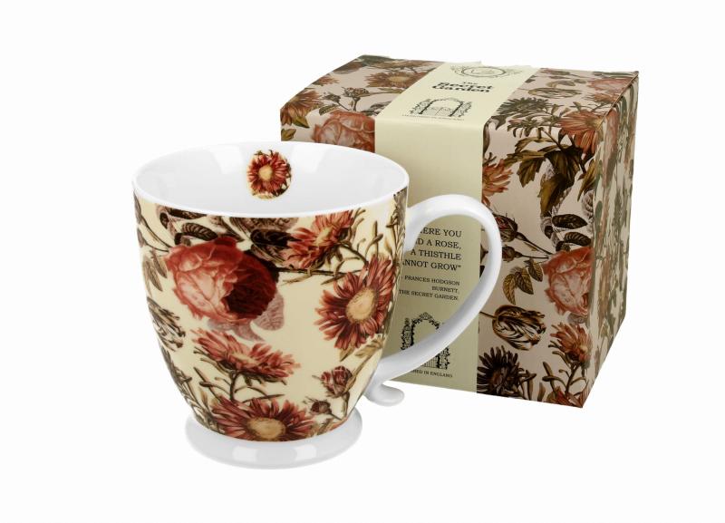 Elegancki kubek na stopce z kolekcji Peony wchodzący w skład serii Secret Garden to niezwykle piękna porcelana w eleganckim wydaniu. Całość wykonany w naturalnym kolorze z delikatnym połyskiem, który nada charakteru i funkcjonalności w codziennym użytkowaniu. Charakteryzuje się nowoczesnym zdobieniem przedstawiający motyw gęsto malowanych kwiatów w stonowanych kolorach na bladoróżowym tle. Kubek został umieszczony na wysokiej stopce, który podkreśla swój klasyczny kształt. Wykonany z wysokiej jakości porcelany New Bone China z idealnie dopracowanym wykończeniem. Łatwy w utrzymaniu czystości, odporny na zarysowania i stłuczenia, dzięki wzmocnionym rantom. Produkt zapakowany w ozdobne pudełko dekorowane tym samym motywem. Subtelne barwy w modnej kompozycji zdecydowanie wyróżniają kolekcję Peony. Jest to doskonały pomysł na niebanalny prezent dla każdego. Można używać w kuchence mikrofalowej oraz myć w zmywarce.