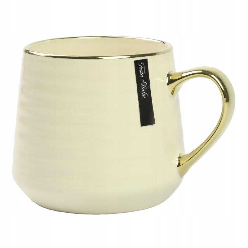 Kubek porcelanowy baryłka XXL 570 ml beż ze złotym uchem Festa Italia 8458