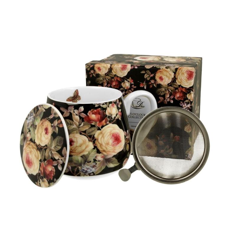 Kubek porcelanowy o eleganckim pękatym kształcie, wyposażony w sitko z wysokiej jakości stali nierdzewnej. Wyprodukowany z porcelany New Bone, charakteryzującej się naturalną białą barwą z delikatnym połyskiem oraz wyjątkową wytrzymałością pozostając przy tym lekkim i delikatnym. Produkt zapakowany w pudełko będące osobnym dziełem sztuki – przepiękny kolorowy kartonik ozdobiony wzorem odpowiadającym aplikacji na samym naczyniu – całość stanowi doskonały pomysł na upominek dla bliskiej osoby.