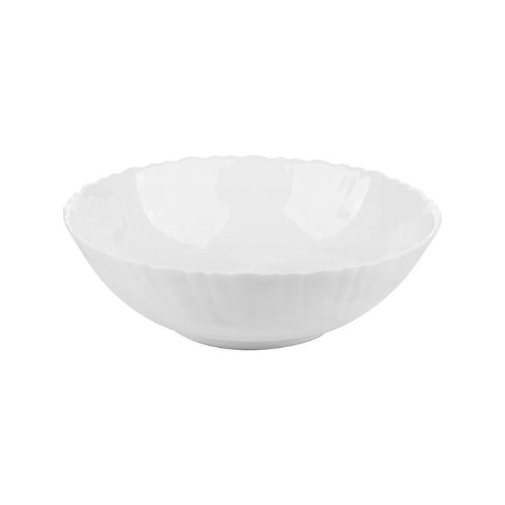 Klasyczna, biała salaterka Agnes, o średnicy 20 cm idealne nada się do serwowania sałatek, surówek, deserów, a także do słonych i słodkich przekąsek. Sprawdzi się podczas codziennego obiadu oraz spotkań w gronie najbliższych. Salaterka zachwyci gości swoją subtelnością oraz falowanymi rantami. Wykonana z wysokiej jakości szkła hartowanego z dopracowanym wykończeniem. Poddana specjalnej odróbce termalnej w celu uzyskania lepszej jakości oraz wytrzymałości na uderzenia. Łatwa w oczyszczaniu, odporna na zarysowania. Nie wchodzi w reakcję ze spożywanymi potrawami. Przeznaczona do kontaktu z żywnością. Nadaje się do mycia w zmywarce oraz do podgrzewania w mikrofalówce.