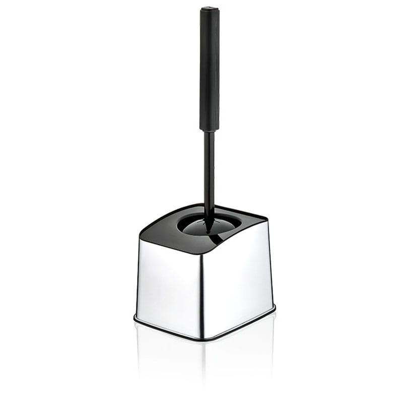 Praktyczny komplet do WC składający się ze szczotki i pojemnika w kolorze czarnym z metaliczną dekoracją to niezbędny element wyposażenia w łazience. Lekka i solidna konstrukcja sprawia, iż użytkowanie jest bezproblemowe. Stojak w formie pojemnika oddziela szczotkę od brudnej wody, zachowując czystość i porządek w łazience. Wykonany z wysokiej jakości tworzywa sztucznego, łatwy w oczyszczaniu i przenoszeniu, odporny na uszkodzenia.