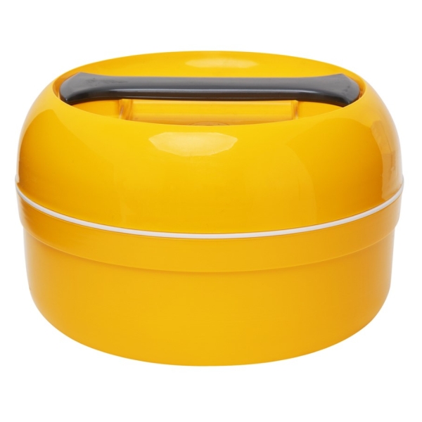 Termos obiadowy wykonany z wysokogatunkowych tworzyw sztucznych, wyposażony w termoizolację z pianki poliuretanowej, zapewnia doskonałą funkcjonalność i efektywne utrzymanie temperatury posiłków. W jego wnętrzu znajduje się wkładka na drugie danie, co umożliwia jednoczesne przechowywanie dwóch rodzajów potraw.